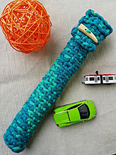 Ahora se teje en espiral la funda y utilizaremos un marcador para saber donde empieza cada vuelta.