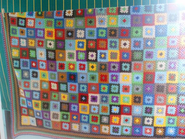Cundía mucho la lana al ser el cuadro más grande y en lugar de coser los cuadros como en la anterior, esta vez los unia directamente con el color pertinente y se gana mucho tiempo, mira la diferencia de 6 a 3 meses.